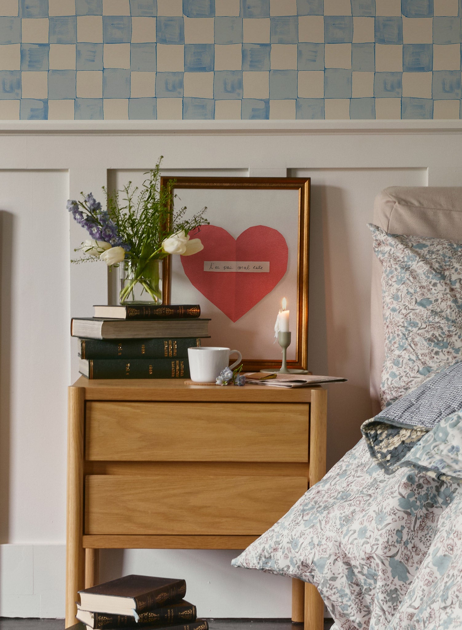 This charming print combines whimsy and affection with a red paper-textured heart, featuring the handwritten note “T’es pas mal cute,” translating to “You’re pretty cute.” The simple, heartfelt message is both playful and endearing, evoking the nostalgia of passing notes and sweet confessions.